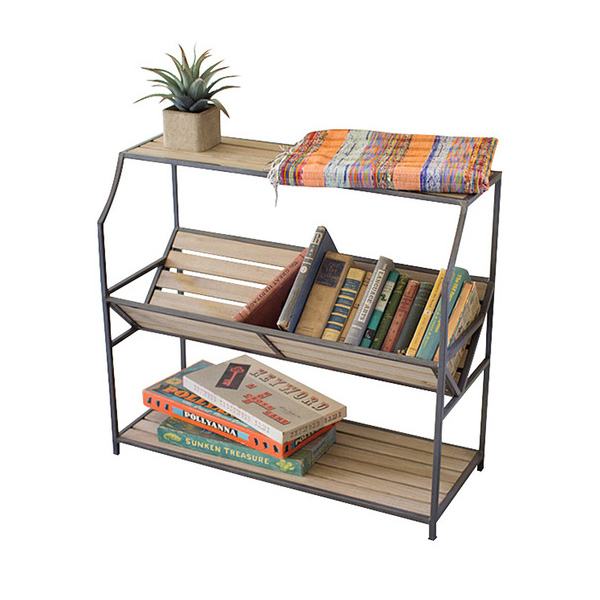 Rustic Industrial Three-Tier Bookshelf with Metal Frame and Wooden Shelves
